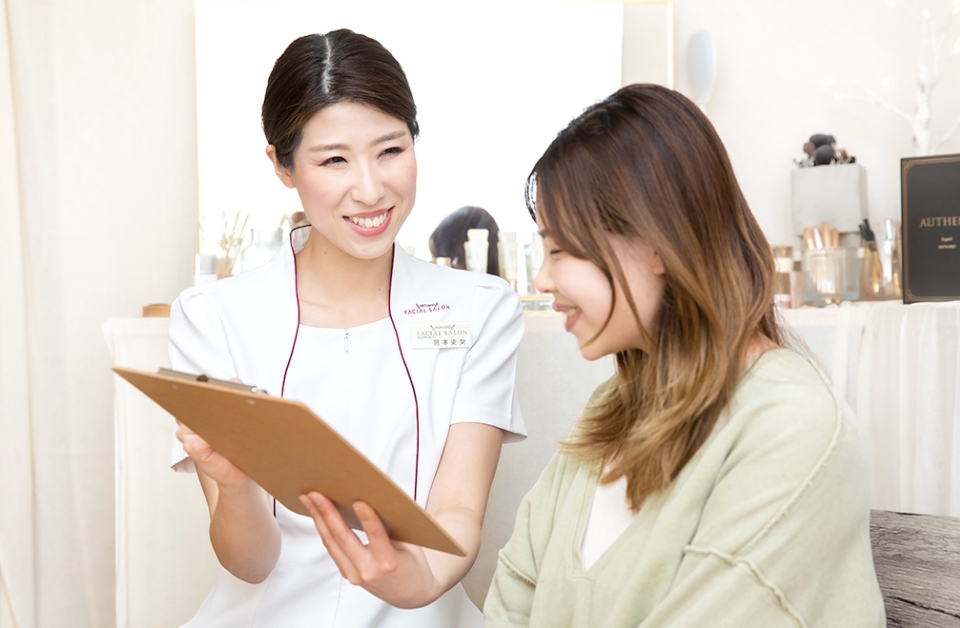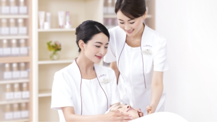 お客様へ肌のお手入れ方法や化粧品のアドバイスに加え、フェイシャルエステの技術を身につけて、