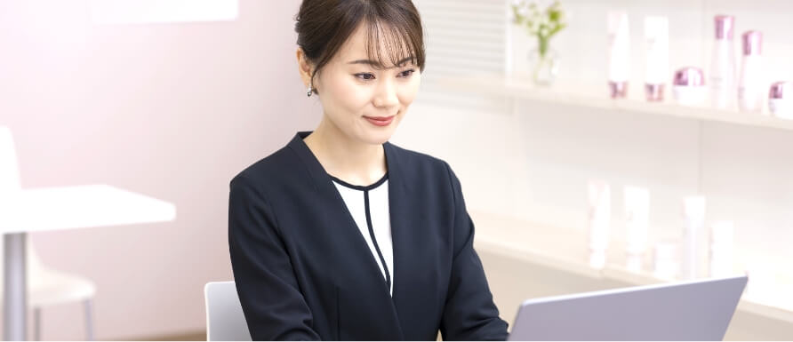 ビューティアドバイザーの基礎知識や技術、お客様づくりの方法を身に付けるビジネススクールを受講します。講師のサポートを受けながら、安心してビューティアドバイザーになっていただくためのステップです。