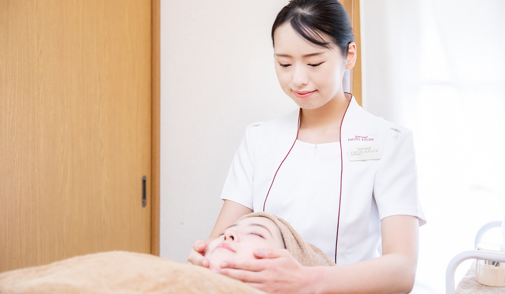 美容の仕事は費用がかかりそうだなとか、女性ばかりだし怖いなという思いもあり、本当に自分に美容のお仕事ができるかどうか不安でした。でも、いざ一歩踏み出してみると思っていた世界とは違い、始めるにあたっての費用の負担もほとんどなく、みんな仲が良くてキラキラしている世界で驚きました。エステセラピストの資格をとるためのスクールは初めて学ぶことばかりで必死でしたが、右も左も分からない私をサロンのみんなで支えてくれたので、安心して楽しく取り組むことができました。