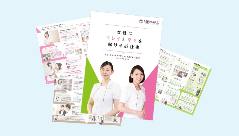 メナードのお仕事に興味を持たれた方には、もっと詳しくお仕事について知ることができる採用パンフレットを差し上げています。